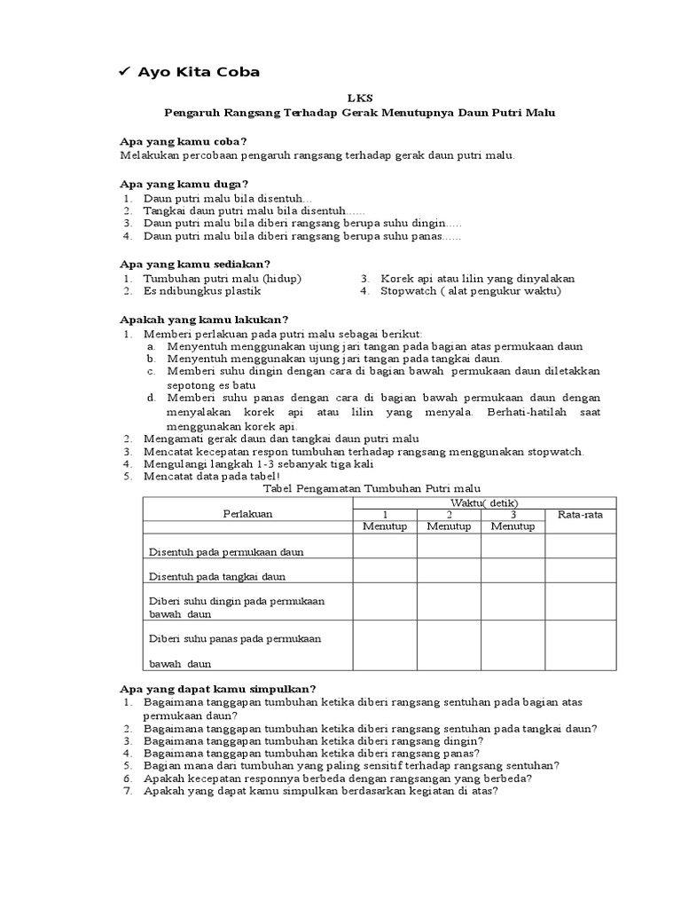 untuk "Bagaimana Dari Tumbuhan Yang Paling Sensitif Terhadap Rangsang Sentuhan - Jawaban Soal Ipa Kelas 8 Percobaan Putri Malu : Bagaimana tumbuhan ketika diberi rangsang sentuhan pada tangkai daun ?"